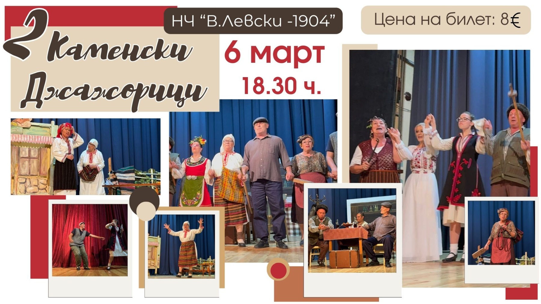Театралният хит „Каменски джаджорици“ се завръща на сцената с нови случки и герои. Поредното представление ще бъде на 6 март, петък, в салона на Народно читалище „Васил Левски“. Билетите с цена 8 евро вече са в продажба, а интересът на велинградчани отново е голям.