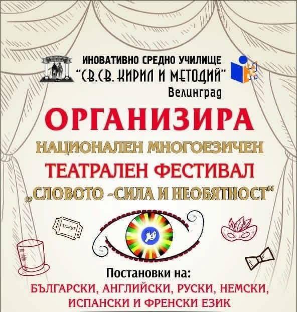 От 5 до 7 юни в НЧ „Отец Паисий – 1893“ във Велинград ще се проведе Националният многоезичен театрален фестивал „Словото – сила и необятност“, който тази година отбелязва своята пе...