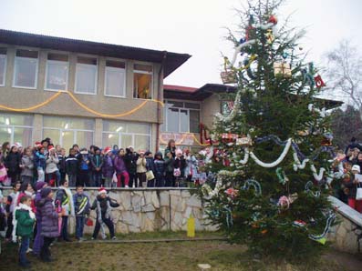 РИТУАЛ На 2 декември ученици и учители от началния курс на СОУ “Св.св. Кирил и Методий” отброиха от 1 до 10 и запалиха светлините на украсената от тях коледна елха пред сградата на Общинския детски комплекс. Свикнали сме да гледаме подобни церемонии в други градове само от телевизионния екран, а ето, че най-малките ученици ни дадоха чудесен пример: украсиха живо дърво и създадоха празник, наситен с хубави емоции и очакване за още по-хубава Коледа.
