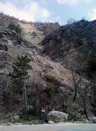 ДЕФИЛЕ Преди повече от 2 седмици бе образувано това голямо свлачище, близо до входа на дефилето от Варвара към Велинград. Голям късмет е, че тоновете скална маса спряха на сантиметри от шосето, не затвориха пътя и не причиниха щети. Явно отговорните институции вярват в късмета, защото видима работа по укрепване и разчистване на свлачището няма. Но да не забравяме, че идва баба Марта, а тя винаги е готова за пролетни вихрушки, порои и изненади.