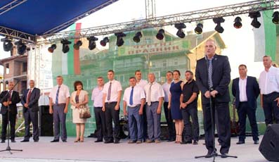 Градският духов оркестър с диригент Н. Янев-Чоли даде началото на официалната част на празника, в която участваха общинското ръководство начело с кмета Любомир Петков, зам.-кметовете Красимир Вандев и Тодор Тодоров и председателят на Общинския съвет Валентин Хаджимосков и официалните гости - зам.-областните управители Гинче Караминова и Стефан Мирев, областният координатор на ГЕРБ Найден Шопов и тричленна руска делегация. Поздравителни адреси изпратиха президентът Р. Плевнелиев, депутатът Десислава Костадинова, областният управител Трендафил Величков, ПП ГЕРБ, кметът на София Йорданка Фандъкова и кметове на общини.