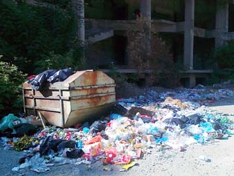 Това е задният двор на нашия център. Ако не мислим за това какво впечатление оставяме у туристите, да помислим поне за собственото си здраве, защото тази мръсотия пръска зарази, бълхи и болести. А общината и “Еко Титан” да не чакат повече вятърът да разнесе боклуците, а да почистят - и под килима, и в задния двор.