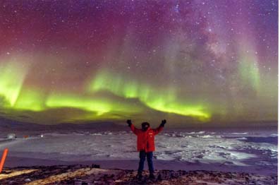 През месеците май, юни и юли зимният студ е комбиниран с почти пълна тъмнина. На самия Южен полюс четирите зимни месеца са напълно тъмни, но на остров Рос за около 1 час дневно пробива тънка ивичка светлина, оцветена в червено и оранжево и гледката е почти мистична. На човешките възприятия помагат въздухът, който е чист и прозрачен, отражението от снега и замръзналия океан, светлината от огромния брой звезди. Зимата е и сезонът на сиянията в различни цветове от слънчевия спектър, но въпреки това през тъмните зимни месеци човек оценява в пълна степен слънчевата светлина и топлина и мечтае за зеленина, трева и дървета.
