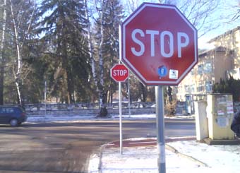 Дали не са въведени някои промени в Закона за движение по пътищата и в Правилника за неговото прилагане по отношение на пътните знаци? Такъв въпрос ще си зададем, когато видим, че на няколко места във Велинград са поставени два еднакви знака на разстояние 3-4 метра един от друг, отнасящи се до една и съща пътна обстановка!