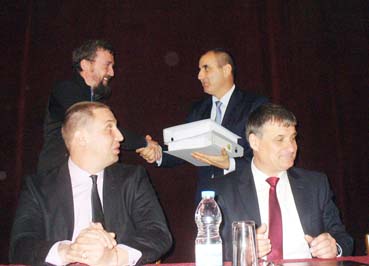 Васил Тодев, председател на Гражданската инициатива за запазване на община Велинград като екологично чист регион без рудодобив: Пълната зала ме прави спокоен за бъдещето. Заедно ще вървим напред и ще спечелим тази битка. Подарявам на г-н Цветанов фотоалбум със снимки от дивите и красиви Западни Родопи с пожелание да ни помогне да ги опазим.