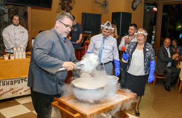 Ради Стамболов бе подготвил изненада за всички присъстващи - вместо очакваните вълшебства от шоколад и хитовото шоколадово суши, той заложи на модерното нискотемпературно готвене. За главни герои при приготвянето на сладолед при температура минус 197 градуса по Целзий шеф готвачът покани кмета на Община Велинград Костадин Коев и помощник-директорката Тодорка Ланджова. “Дуетът” бе избран, за да покаже как общината и образованието могат да работят заедно и да постигат добри резултати. С кулинарни оръжия в ръце и под вещото ръководство на професионалиста те приготвиха малинов сладолед с йогурт, а шеф Стамболов доказа, че може да диктува времето в ресторанта и да завалят снежинки през април.