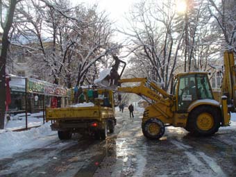 Управителят на „КМД” ЕООД Славчо Лупов заяви, че всичката налична техника е в изправност и работи за създаването на нормална обстановка за движение по пътищата. 5 снегорини минават редовно и разчистват натрупания сняг. Почистват се и тротоарите, като целта е да се осигури такава широчина, която да позволи разминаването на пешеходците. В районите на автобусните спирки се хвърля сол срещу заледяване и замръзване на тротоарните плочки. Извозване на натрупания отстрани на улиците сняг не се извършва, защото това ще оскъпи излишно цялостната дейност. Премахването на снега е направено в пешеходната зона пред сградата на Общината. По отношение на това дали се почистват и страничните улици, стана ясно, че причината част от тези улици да не се чистят са паркираните на тях автомобили. Като пример за това беше дадена ул. „Димитър Талев” в кв. Лъджене. По нея влиза снегорин и някъде по средата стоят спрели две коли, които правят невъзможно движението напред. Много хора не се съобразяват с факта, че след снеговалеж тръгват машините за разчистване. И вместо да приберат колите в гаражите или в дворовете си, те ги оставят на улиците, което на практика прави невъзможно или неефективно почистването. За същия проблем сподели и представителят на фирма „Еко-Хидро-90” ЕООД Петър Миров. Той допълни, че пътищата до разклона за Пашово и до Сърница са в добро състояние.