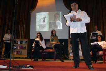 Това ми внушиха организаторите и изпълнителите на спектакъла, наречен „Мечтатели с пера”. Уютният мизансцен с библиотечните шкафове, хората между тях, четящи и рецитиращи, докато на екрана проблясваха и се задържаха достатъчно дълго имена на книги и автори. Всичко това създаде атмосферата на духовна интимност – такава, каквато е и същността на четенето: интимен акт, само ти и книгата.