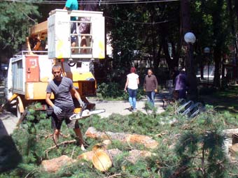 На 13 юли в централния парк под надзора на общината бяха отрязани още няколко дървета. Но причината не е ремонтът, а предстоящото поставяне на павилиони. На въпрос на “Темпо” кметът К. Коев отговори: “Режем по необходимост. В парка ще бъдат позиционирани търговски обекти, така че се налага санитарна сеч на сухи дървета и бръшлян. Първото ниво на клоните също ще се отреже, за да имаме по-светъл и проветрив парк. През декември там ще организираме и Коледния базар. Правим всичко с цел разширяване на центъра. С тази идея махнахме и кашпите около дърветата по ул. “Хан Аспарух”.