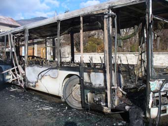 През това време автобусът продължава да гори. Шофьорът е направил опит да го загаси с наличните средства, но не е успял. При пристигането си огнеборците са изгасили автобуса, но той е изгорял напълно.<бр>