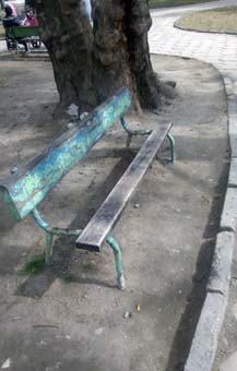 Счупени пейки в градината пред ДКЦ