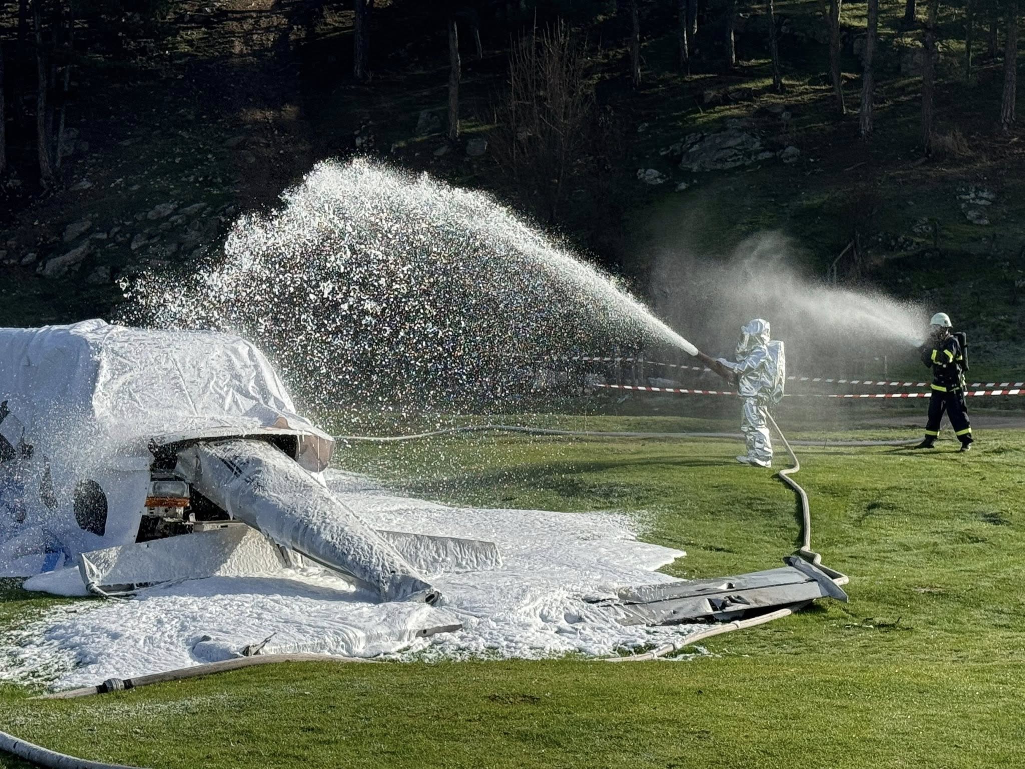 В реалистична среда и сложни теренни условия, екипите на ГДПБЗН, МТС, МО, БЧК, НАДРБ и други партньори демонстрираха координация, професионализъм и готовност за ефективно реагиране при авиационни инциденти.