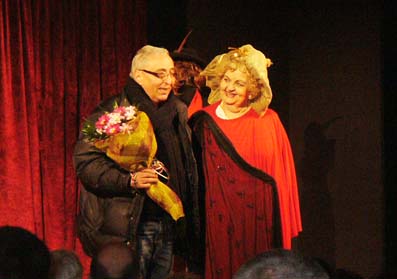 Овациите в края на представлението дълго не стихнаха. Председателят на читалището Цветан Котев поднесе на голямата актриса букет цветя с мартеничка като пожелание за здраве и пролетно настроение. А тя се поклони и каза на велинградската публика: “Когато ви е тъжно, спомнете си за тази вечер, в която сме били заедно и сме се обичали!”.