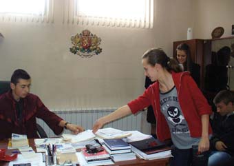 По предложение на прокурор Малинова ученикът Васил Сергев влезе в ролята на районен прокурор за един ден. Пресъздадохме връщането на прокурора от съдебно заседание, облечен в тога. Той ни прие в кабинета си, където го очакваше Венцислава Бормалийска, за да подаде жалба.