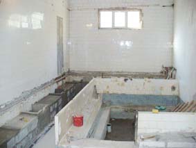 Засега е подменена остарялата ВиК инсталацията. Ще бъдат сменени всички плочки от пода до тавана, сериозни ремонтни работи ще трябва да се направят и по басейна. Разчистено е помещението на съблекалнята, което дълго време е използвано само като склад и също се нуждае от освежаване.
