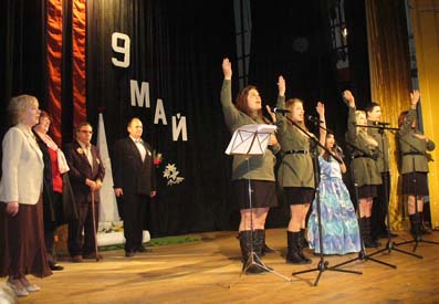 Тази година събитията, свързани с 9 май, започнаха ден по-рано. Вечерта на 8 май в залата на читалище “Отец Паисий” за пореден път сдружение “Славяни” изнесе свой концерт-спектакъл, посветен на Деня на победата над фашизма. В продължение на 1 час на сцената оживя историята на Великата Отечествена война, пречупена през разказите и личните истории на различни хора, видели отблизо лицето на войната и преживели целия неин трагизъм и героизъм. Прозвучаха познати и непознати песни и стихове, които по един много човешки и земен начин върнаха времето назад. Връщаме се към миналото с огромното желание в бъдещето да има мир и благоденствие, каза г-жа Людмила Кремова, председател на сдружение “Славяни”. Чудесните изпълнения на членовете на “Славяни” и вокална група “Караоке” завършиха с жизнеутвърждаващата “Пусть всегда будет солнце” и бяха изпратени от пълната зала с дълго нестихващи аплодисменти.