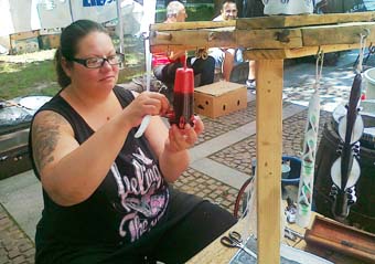 За първа година сред участниците в базара на занятите бе Нина Маринова от Варна. Ето какво сподели тя за читателите на “Темпо” за майсторството да изваеш само с ръцете си красиви и неповторими декоративни свещи: “Занимавам се с ръчна изработка на свещи от 3 години и съм самоука. В България с това се занимаваме само трима души, няма къде да те научат, няма инструменти - всичко си правим сами. Изработката на една свещ отнема 15 минути, но се изисква голяма точност на ръката и максимална концентрация, защото разполагаш само с 4 минути време за оформяне на елементите и фигурите - след това парафинът се втърдява. Нещата трябва да се случват много бързо и нямаме право на грешен разрез. Българите ценят ръчно изработените свещи, но китайските са ни залели от години. Хората оценяват нашия труд като занаят и приложно изкуство, но не знам защо на празник пак посягат към китайските свещи, наблъскани с незнайно какви препарати. Тепърва трябва да се учим, че нашето е по-ценно. Не зная колко време ще ни е нужно, за да си върнем ценностната система като цяло, но ще е хубаво да се случи.”