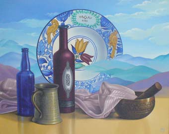 Художничката Каля Зографова е родена на 7 август 1959 г. в Нова Загора. През 1978 г. завършва Художествената гимназия в София, а през 1984 г. и Художествената академия. Участва в общи и самостоятелни изложби в страната и в чужбина - Берлин, Кан сюр Мер - Франция и в Чикаго - САЩ. Сред картините на Каля Зографова в ГХГ са “Притча”, “Бяла магия”, “Реалностите”, “Синьо птиче”, “Високи сини планини”, “Между небето и земята”, “Счупеното носи щастие”, “Скалата на вечността”, “Натюрморт с пеперуда”.