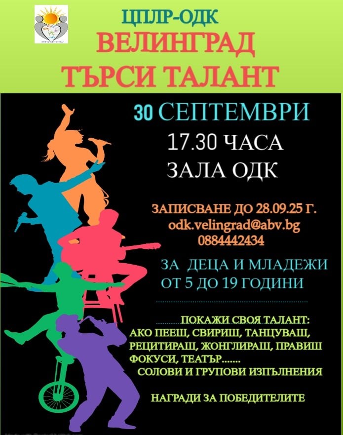 За всички талантливи деца и младежи е поредното предизвикателство на ЦПЛР-ОД - Велинград. На 30 септември, в 17.30 часа, центърът организира шоуто „Велинград търси талант“.