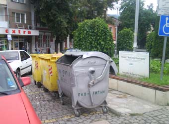 Контейнери за смет превземат местата за паркиране на инвалиди