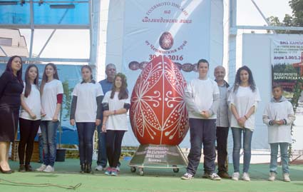 И докато всеки щрих добавяше още красота към яйцето, за неговото сътворяване разказа директорката на ПГД “Иван Вазов” Росица Рускова. Идеята се ражда случайно, но се осъществява с много труд и математическа прецизност от старши учителя Димитър Мавров и ученици от IX и XI клас. Яйцето е от стереопор, тежи 120 килограма, високо е 190 см и има 1 метър диаметър. Преди създаването на голямато яйце ученици от гимназията направиха три по-малки от дърво с височина 60 см, които също бяха красив детайл от празника.