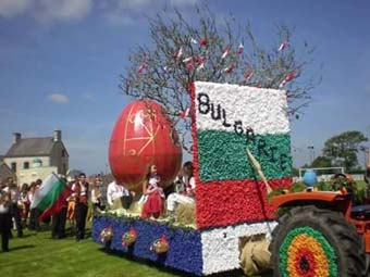 Думите, че посрещането е било грандиозно съвсем не са преувеличение. За дефилето, което е част от фестивала, домакините са подготвили трактор, върху чиято платформа са изработили от хартия българския трикольор с бели, зелени и червени рози. До знамето - пролетно дръвче, окичено с мартеници и френско момче и момиче, облечени като нашите Пижо и Пенда. И... огромно червено великденско писано яйце, копие на това, което бе изработено във Велинград за тазгодишния Великден. “Винаги посрещаме гостите си подготвени!” - така французите обясняват факта колко много знаят за Велинград, колко много са прочели и видели, за да посрещнат нашия ансамбъл не просто като отлични домакини, а като истински приятели. Затова и залата за хранене грее с българските цветове: зелени покривки, бели чинии, червени салфетки и мартеничка пред всеки гост.