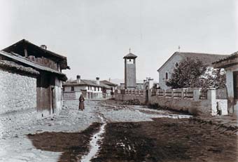 Църквата в Чепино с дървената камбанария в началото на 20-те години на ХХ век.