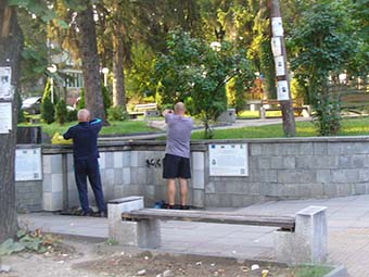 Пешеходната разходка свършва пред парка “Вельова баня”. Тук улица “Хан Аспарух” се изкачва към кръстовището с улица “Юндола”. Това е един от най-критичните участъци по улицата. Буквално няма квадратен метър без дупки по асфалта. Големи са пораженията от прокопаването на трасе за минерална вода за хотел “Елбрус”. Друга част от дупките са от ВиК аварии. На места асфалтът е подкопан от огромното количество вода, което се стича по улицата при всеки по-обилен дъжд. При дъжд тази част на улицата се превръща във водосбор на реките, които идват от квартала над ул. “Юндола”. Често шахтите не успяват да поемат цялото количество вода и резултатите са видими. От години тук е и строителна площадка на два нови хотела, с постоянно движение на тежкотоварни автомобили, опасно дълбоки изкопи за основи и басейни, шум и прах. Крайно време е общината да направи ремонт на асфалтовата настилка! Или поне да изпълни контролните си функции кой къде и как копае и как след това възстановява асфалта. Още един сигнал, който изисква спешна намеса: уличните лампи в тази част на улицата не работят и трябва да бъдат сменени!