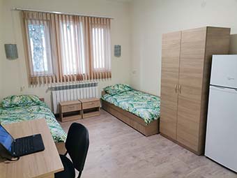 Общежитието се помещава в част от сградата на Областното пътно управление и е буквално на метри от гимназията. То е изцяло ремонтирано със средства от бюджета на Министерството на образованието и науката.