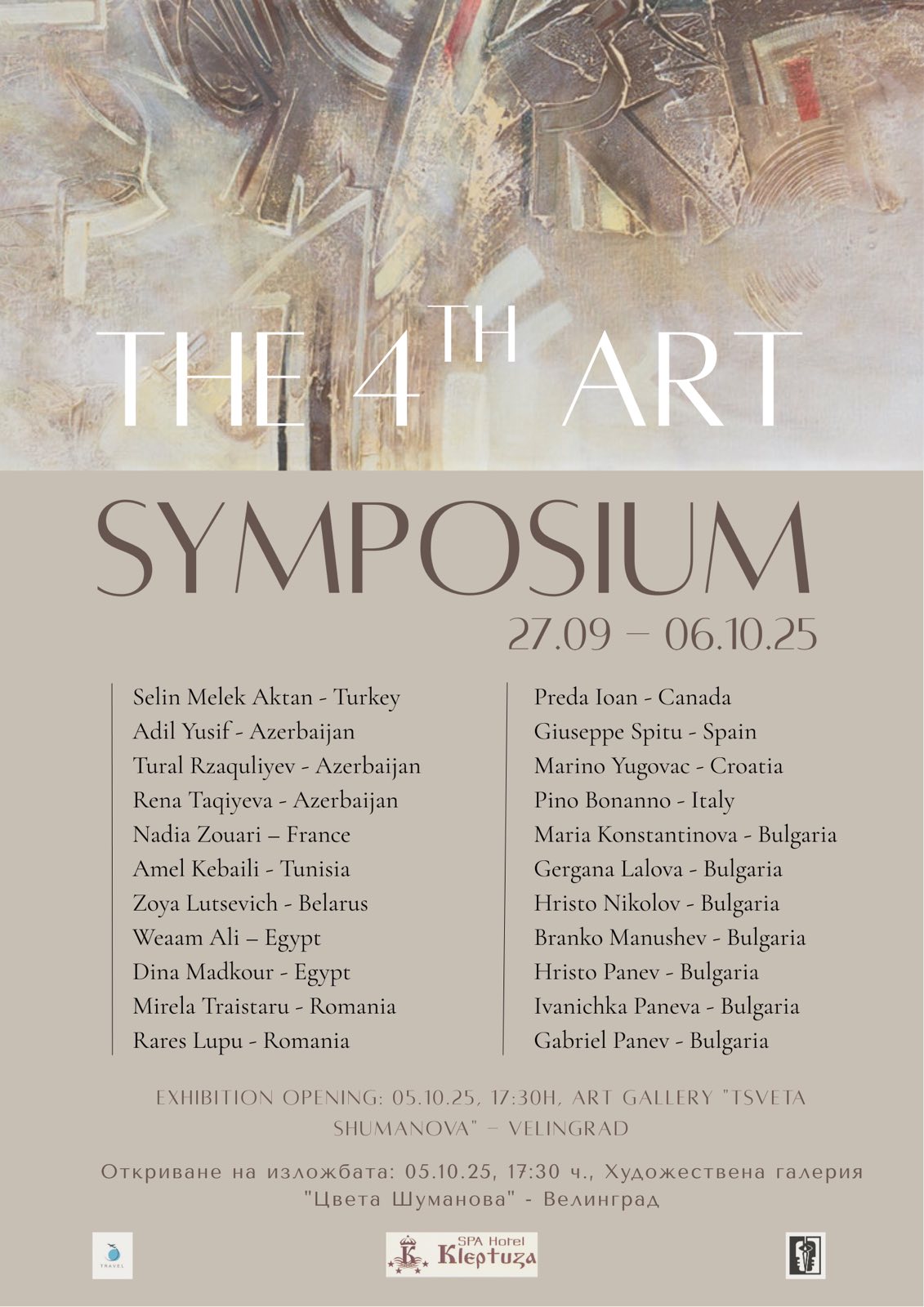 От 27 септември във Велинград започна арт симпозиум с участието на 20 художници от 12 държави. Домакин е хотел „Клептуза“, чийто собственици за четвърти път организират провеждането на такава среща на художници и им осигуряват условия да творят, да споделят и да покажат картините си пред публика.