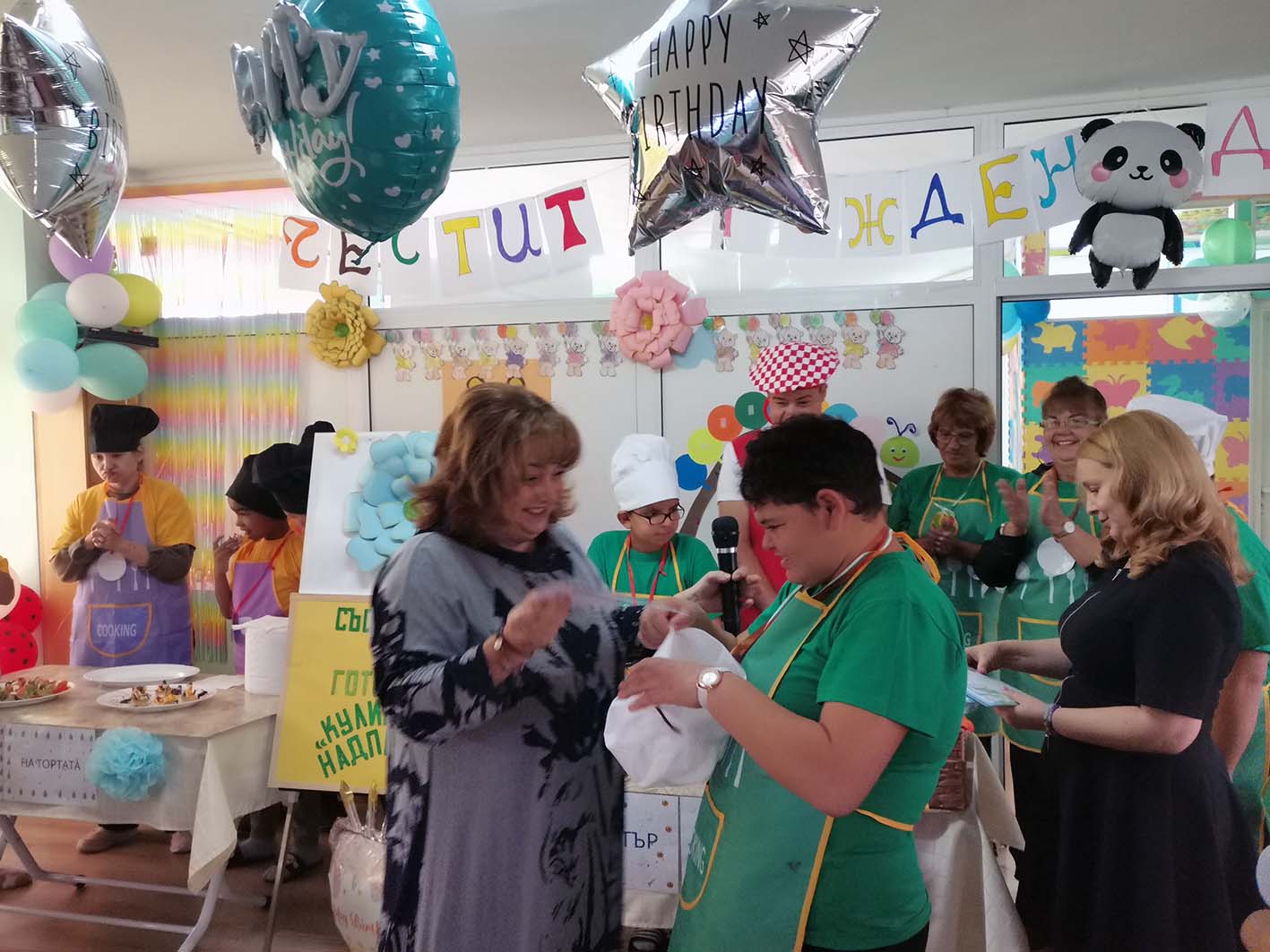 Гости на 20-тия рожден ден на центъра бяха представители на Общинска администрация, Дирекция Социално подпомагане, други социални услуги във Велинград, много родители и приятели. Центърът ги посрещна в истинска празнична премяна и изненада с кулинарна надпревара. Два отбора - отбор „Черешката на тортата“ с капитан Иван и отбор „Мастър шеф“ с капитан Светлин премериха сили в подготовката на салата и десерт. Децата и младежите получиха помощ от своите учители и баби, за да покажат уменията, придобити в ателието и клуба по готварство. Кулинарните им творения оцени жури в състав Дияна Кехайова - ДСП, Мариана Зинкова - ОА и Борис Златарев - родител. Капитаните презентираха подготвените ястия, а журито награди с най-високата оценка усилията и на двата отбора. По време на цялата кулинарна надпревара деца от дневния център забавляваха гостите с гатанки, песни и музикални изпълнения. А на финала г-жа Атанасова раздаде медали, грамоти и награди за всички участници в празничната програма, както и на дългогодишни служители в ДЦДМУ.