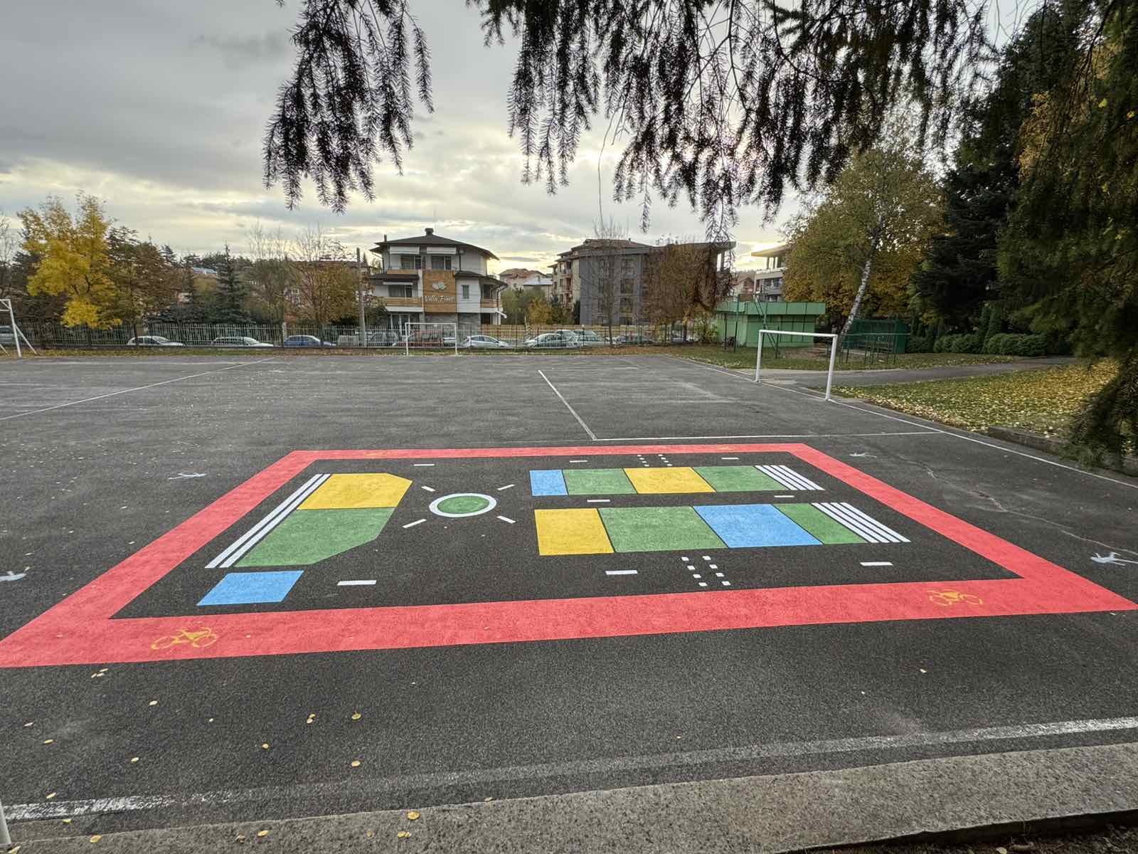 Изградената външна площадка е с размери 11 х 6 метра и включва необходимите маркировки и елементи на уличната инфраструктура. Тя разполага с кръстовища, включително обозначени пешеходни пътеки, което позволява разнообразни практически упражнения в условия, максимално близки до реалната пътна среда. В рамките на проекта е оборудвана и вътрешна (подвижна) площадка, което предоставя възможност за обучение през цялата учебна година. Материалното обезпечаване включва още модел на светофар (подвижен), пътни знаци и конуси, стоп палка и сигнално-предпазни жилетки, симулационни очила, табла за обучение по БДП, велосипед и каска, както и програмируем учебен робот за интерактивни дейности.
