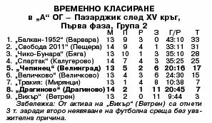 Три кръга преди края на Първата фаза от футболното първенство в „А“ ОГ – Пазарджик, Група 2, отборът на „Чепинец“ заема петата позиция във временното класиране с актив от 17 т. след 5 победи, 2 равенства и 6 загуби с голова разлика 20:16. При всички положения това не е най-желаното място, на което малкото останали фенове искат да виждат велинградския тим.