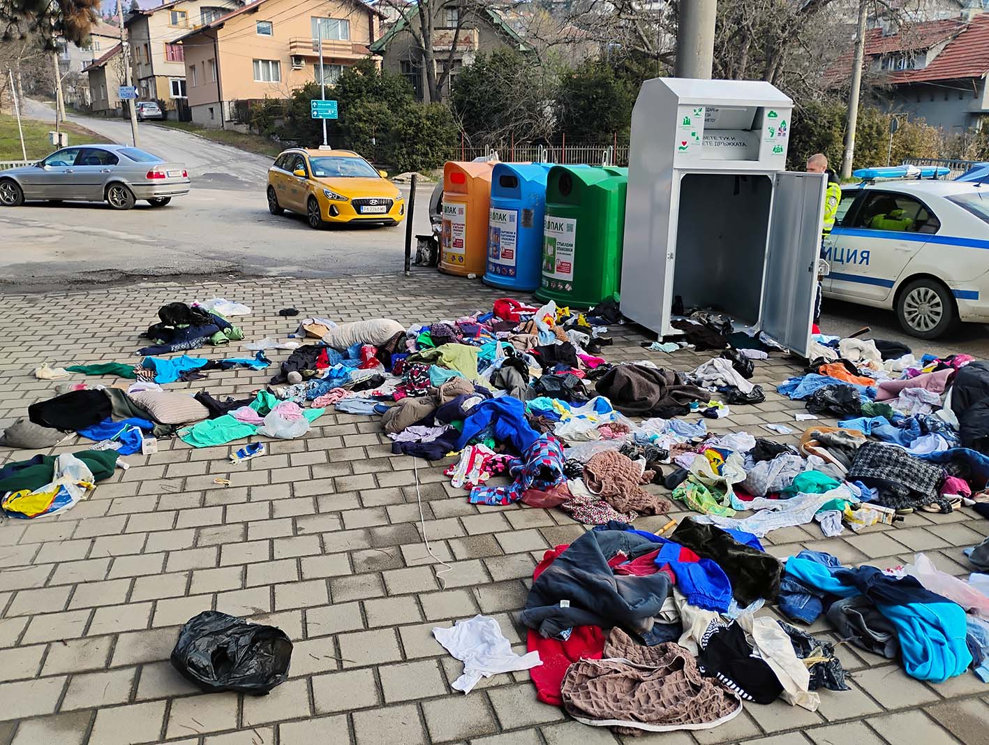 В този вид осъмна контейнерът за текстилни отпадъци, разположен на моста при парка на Вельова баня рано сутринта на 25 март. В контейнера се събират дрехи, които са в добро състоян...
