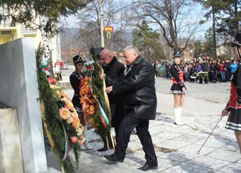 Кметът Иван Лебанов поздрави събралите се на площада хора с националния празник. Той рецитира част от “Опълченците на Шипка” и каза: “Трети март е денят, в който преди 135 години България възкръсна за нов живот, денят на опиянението от свободата, жадувана цели пет века! На тази светла дата с дълбоко преклонение отдаваме почит към руските войници, румънските и финските войни, българските опълченци и всички, които със своята героична саможертва са вграждали живота си в олтара на Българската свобода! Трети март за нас винаги ще бъде ден на признателност, който ще ни напомня високата цена на нашата свобода. Нека пазим заедно българското самосъзнание, устояло пред поробителя и заплатено с кръвта на всички, защитили свободата ни! Нека дните ни стават все по-светли - така, както преди 135 години Трети март огря душите на предците ни!”