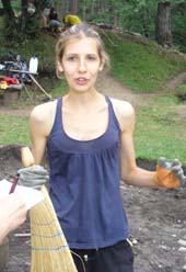 На Острец е много красиво, но и много жалко. Има толкова много керамика и други ценни неща! Това е историята на България и ако тя бъде открадната, няма да разберем цялата българска приказка. Не разбирам защо крадат монети и защо не се дават пари, за да се опазват археологическите обекти. Злато можеш да си купиш, важното е да се види контекста и чрез него да се опознава историята. В България с малко се опитват да правят много. Днес от Горското ни закараха до Острец, но трябва някой да се грижи за опазването на нашата история. Всички ходят в Гърция, а тук има същите археологически забележителности. Хората на Запад мислят, че България няма история, а толкова много може да се научи за траките, които нямат писменост, но са развили изкуството да коват оръжия и още много други умения. В Кеймбридж учих африканска археология. За Африка също се смята, че ако не е Египет, няма смисъл да се правят разкопки. Но всъщност най-интересното е сравнението как са живели различните хора в различните епохи - например връзките между траките и келтите. Много съм доволна, че дойдох на разкопките в България, че съм тук, защото научих много. Едно е да четеш за траките, друго е да откриваш живота им по време на разкопки. Англия няма такова богато археологическо наследство, там един камък да намерят и им дават толкова пари, колкото искат. Най-много ми се иска държавата и ЕС да осигурят средства, за да може проф. Гергова да продължи разкопите тук.