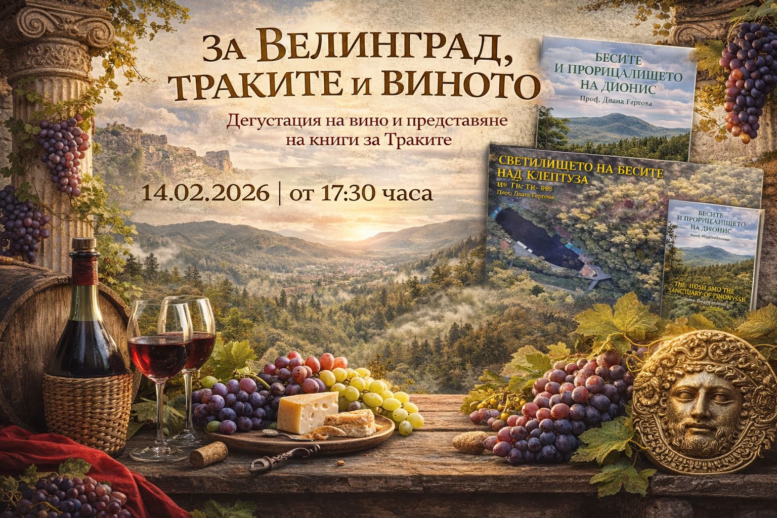 В този ден почитаме Трифон Зарезан – наследника на най-тракийския бог Дионис, бога на виното, възраждащия се живот и природата. Неслучайно 14 февруари е и професионален празник на българските археолози,
