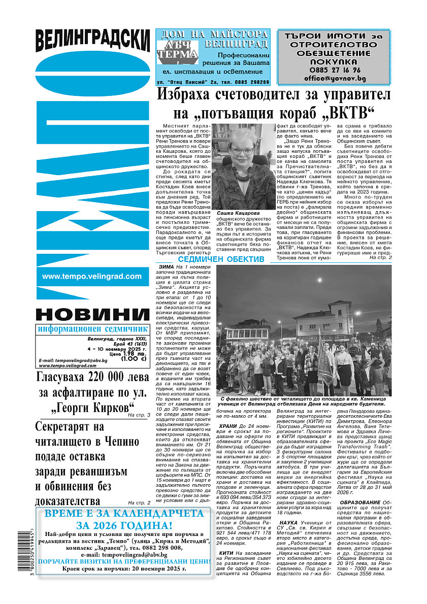 CopyRight Вестник "Темпо" ЕООД , Велинград 2023